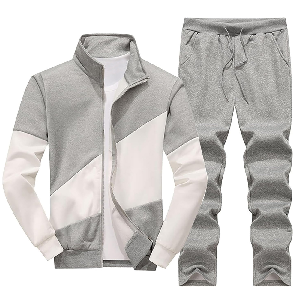 Light Grey & White Color Block Tracksuit Set – Men’s Casual Sportswear