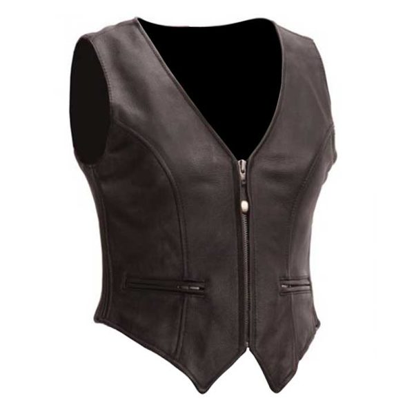 Be the first to review “Women’s Black Leather Biker Vest with V-Neck and Zip Closure”