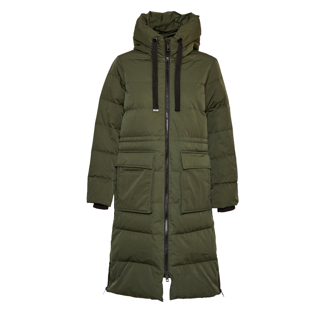 Women’s Long Olive Green Puffer Coat – Hooded Winter Parka