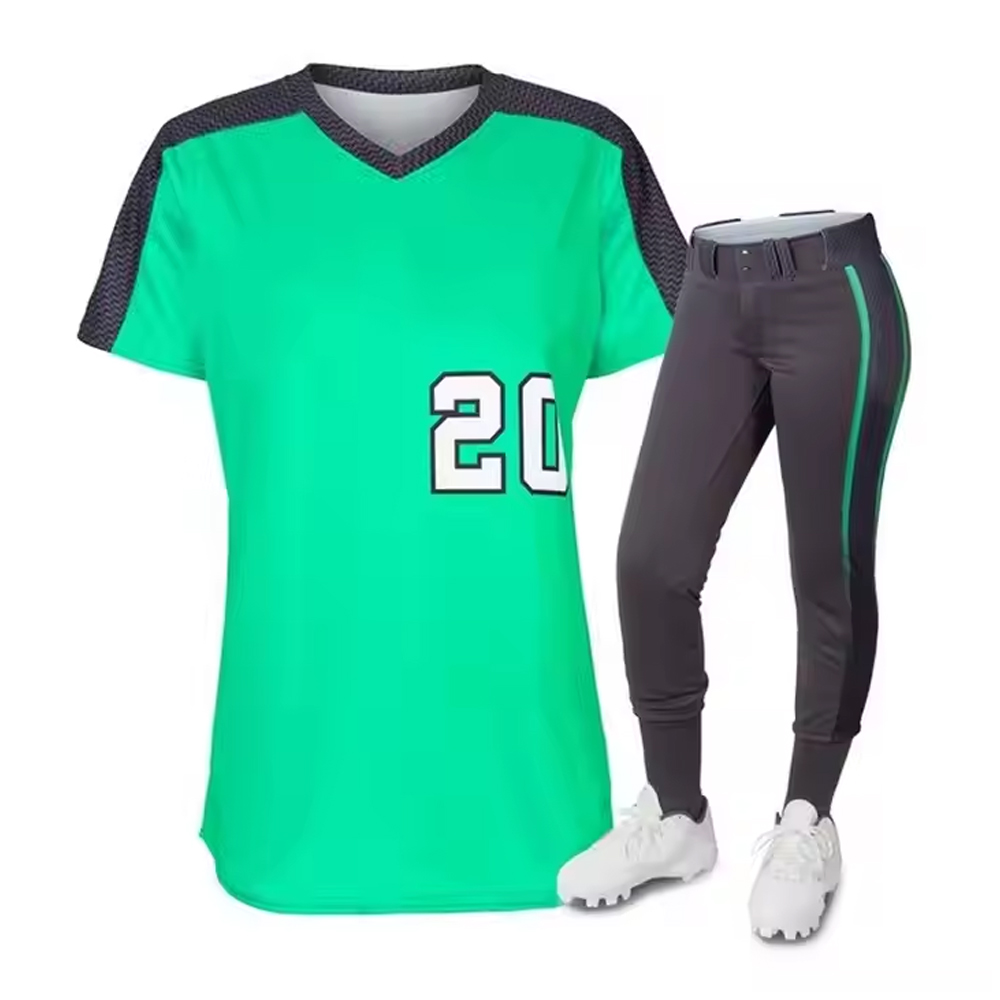 Women’s Softball Uniform – Neon Green & Charcoal with Jersey #20